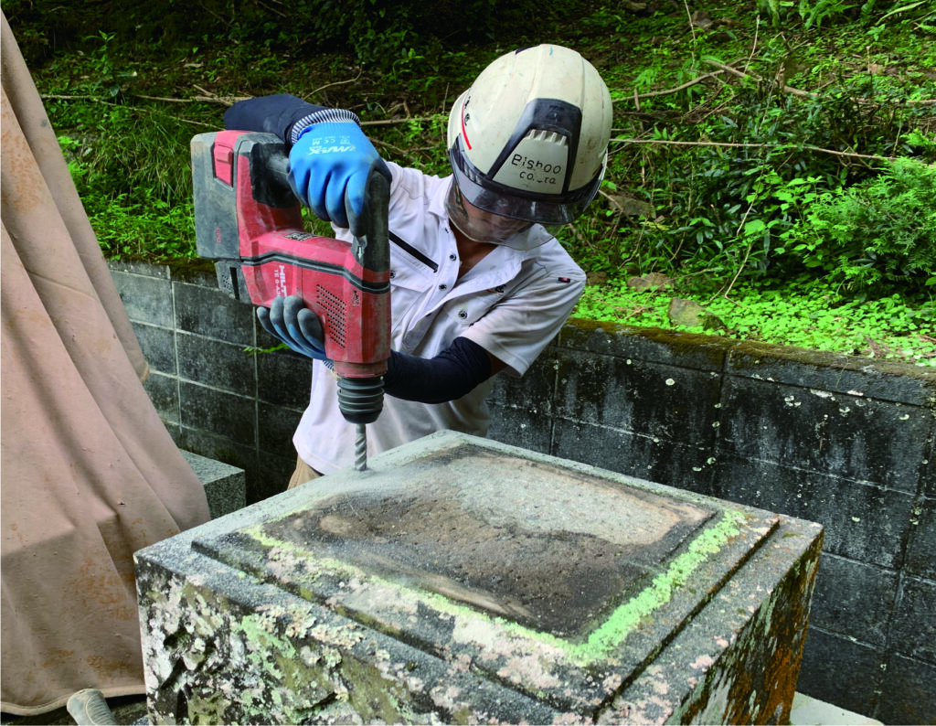 職人が撤去する墓石を手作業で運び出し、土台だけ残す形で施工完了しました。